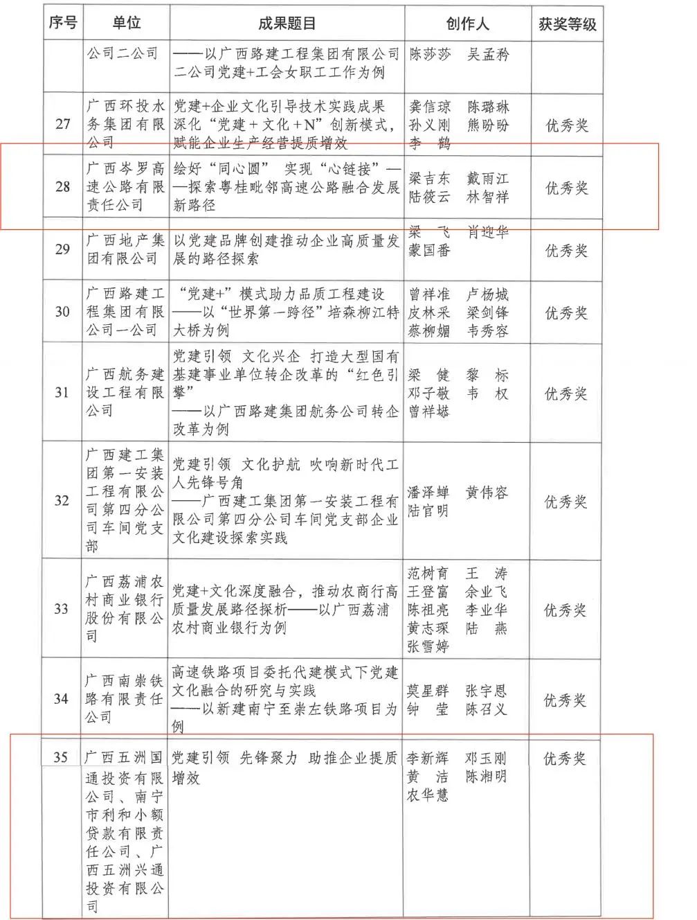 国通利和兴通公司《党建引领先锋聚力助推企业提质增效》获优秀奖(作者:李新辉、邓玉刚、黄洁、陈湘明、农华慧)。